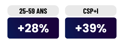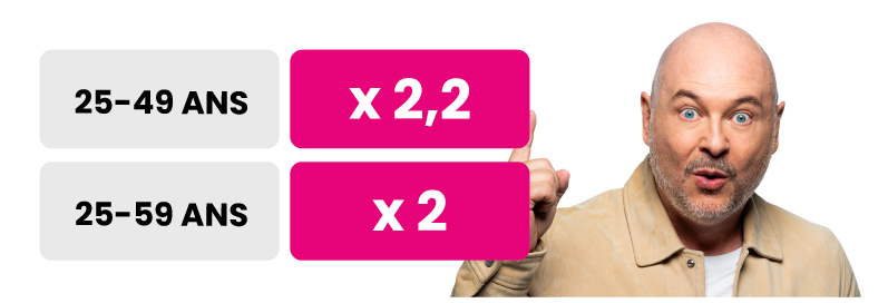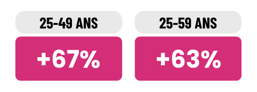 Source : Médiamétrie EAR National SO 25, LàV 5H-24h, Audience moyenne 25-49 ans et 25-59 ans, Evol vs SO24